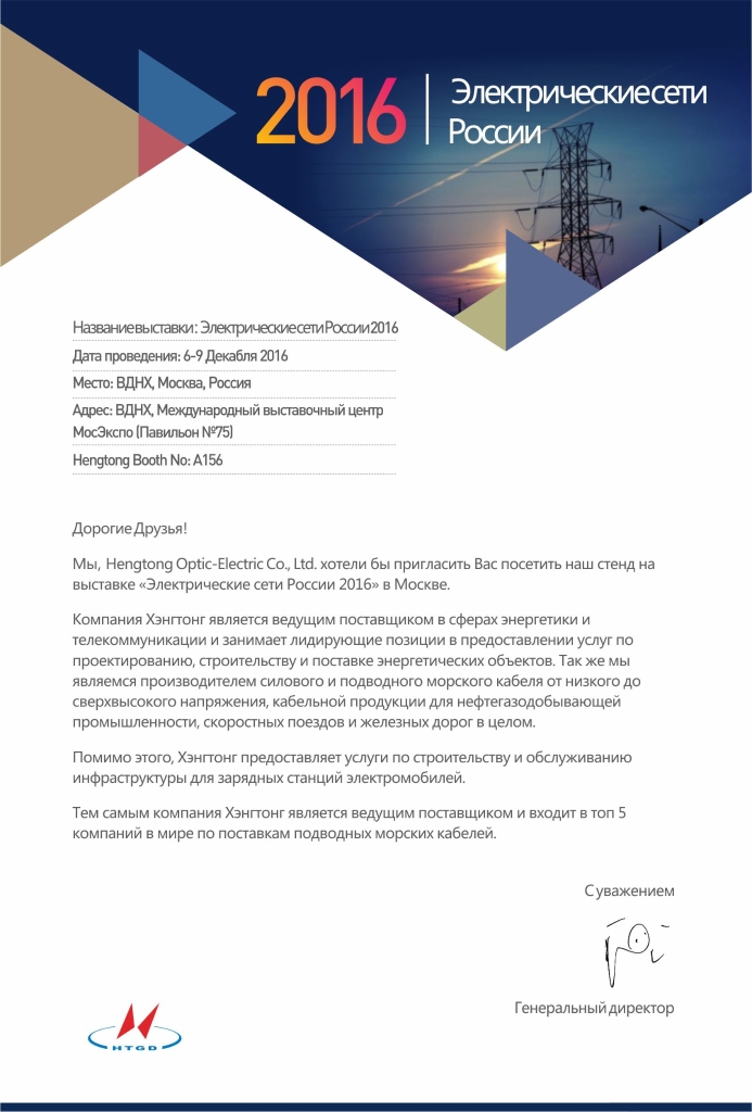 Hengtong was invited to Electrical Networks of Russia-2016 on December 6th