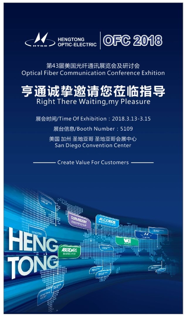 Hengtong Optic-Electric is going to attend the 2018 OFC
